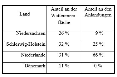 die anteiligen Wattenmeerflächen trägt Niedersachsen auf 25 % der